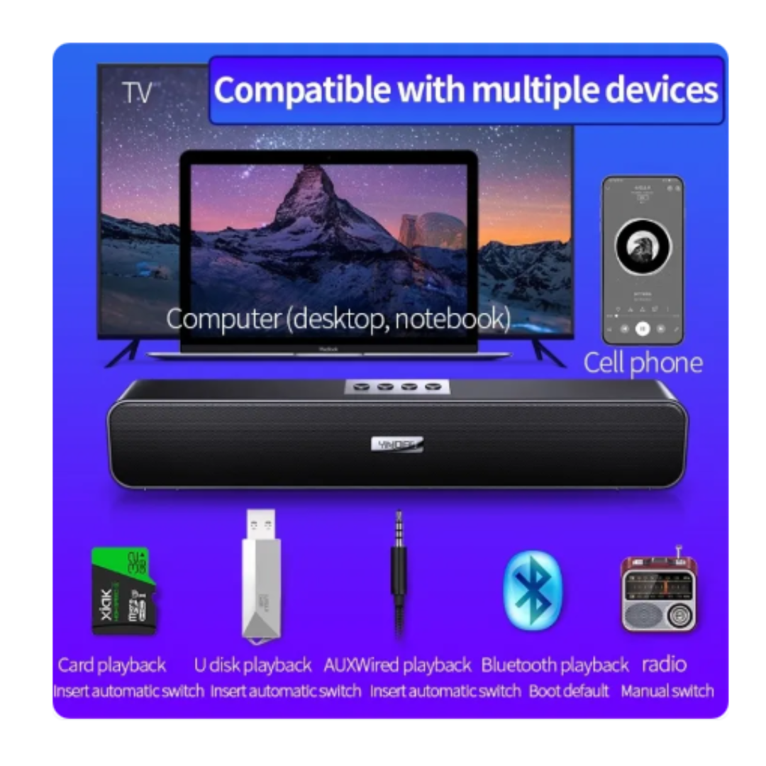 ลำโพงบลูทูธ ไร้สาย ซาวด์บาร์ LEERFEI รุ่น E-91 ให้เสียงดังกระหึ่ม เบสแน่นๆ ลำโพงแบบ Stereo เชื่อมต่อ TV ได้