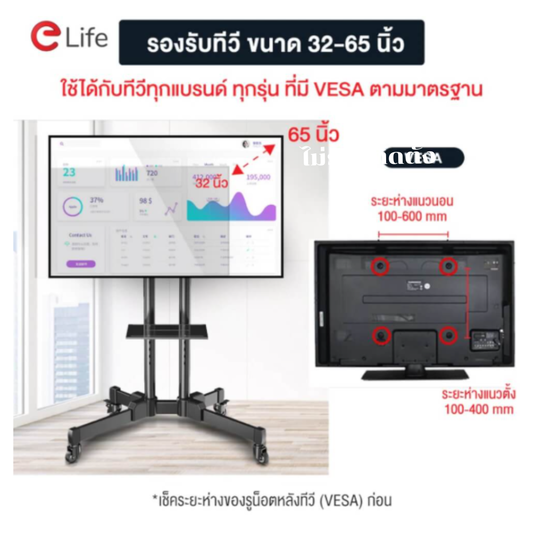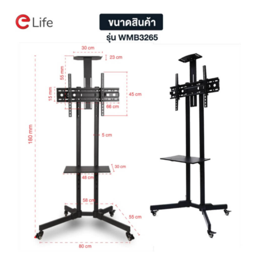 ขาตั้งทีวี แบบล้อเลื่อน ELIFE สีดำ รองรับทีวีขนาด 32 - 65 นิ้ว